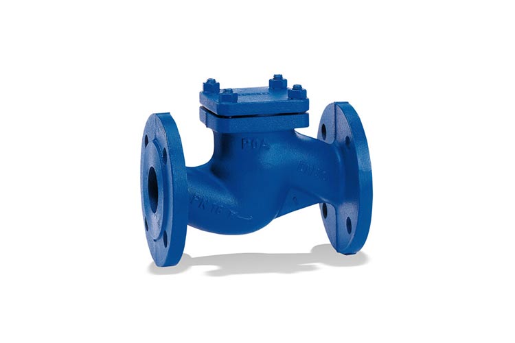 Nozzle check valve to DIN/EN with flanged ends, Venturi-type body, max. flow velocity 2.5 m/s. Body made of cast iron, check disc made of brass and cast iron, seat made of stainless steel. Suitable for installation in horizontal or vertical pipes. Rapid closure without surge pressures.